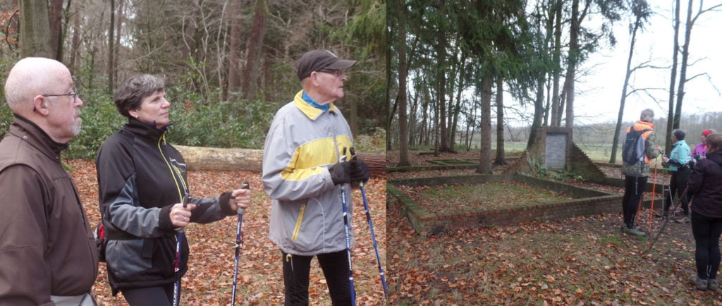 Nog onder de indruk van dit verhaal wordt de tocht door een afwisselend en rustig gebied voortgezet. Na ongeveer twaalf kilometer gelopen te hebben, zijn we weer op de parkeerplaats terug. En daarna nog even napraten in de kantine, zoals altijd met een bakkie en wat lekkers erbij. Omdat ik momenteel een streng dieet volg, heb ik natuurlijk geen slagroom op mijn stuk appeltaart genomen. Al met al kunnen we zeggen, dat we een gezellige, afwisselende wandeling hebben gemaakt, waarbij we ook nog wat opgestoken hebben. Op naar de volgende tocht in 2017.