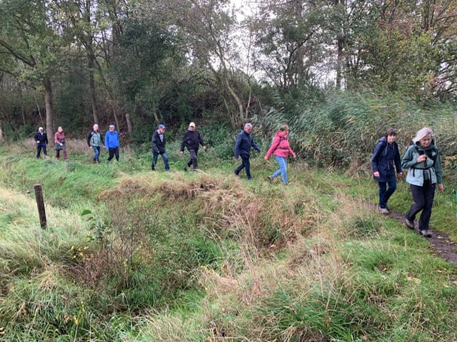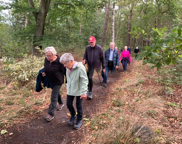 De mindere weersvooruitzichten ten spijt, waren vanmorgen toch 27 leden van de NWGR naar De Moer gekomen voor de maandelijkse lange wandeling. Niemand van hen werd teleurgesteld want vanaf boerderij Annahoeve werd een prachtige wandeling gemaakt door de natuurgebieden tussen De Moer en Kaatsheuvel. Onderweg werden de leden door Peter geïnformeerd over de bijzondere waarden van dit gebied. Met name over de monumentale beukenboom in het Loonse land.