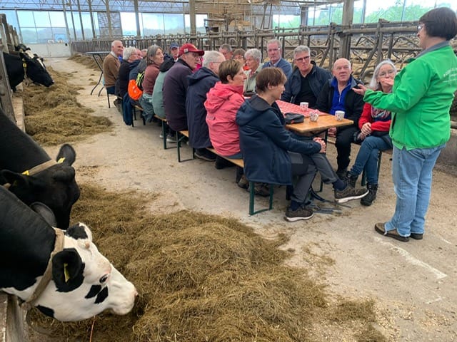 Na de wandeling werd op de Annahoeve tussen de koeien neergestreken voor koffie met cake.